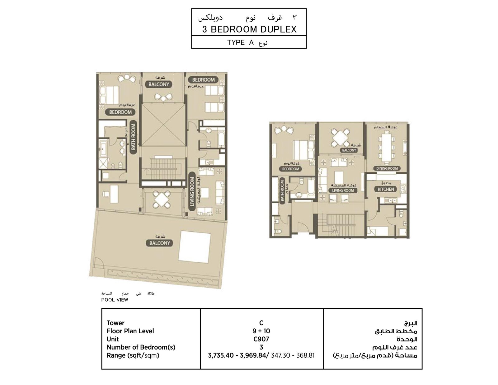 - 3 to 4 bedroom duplexes