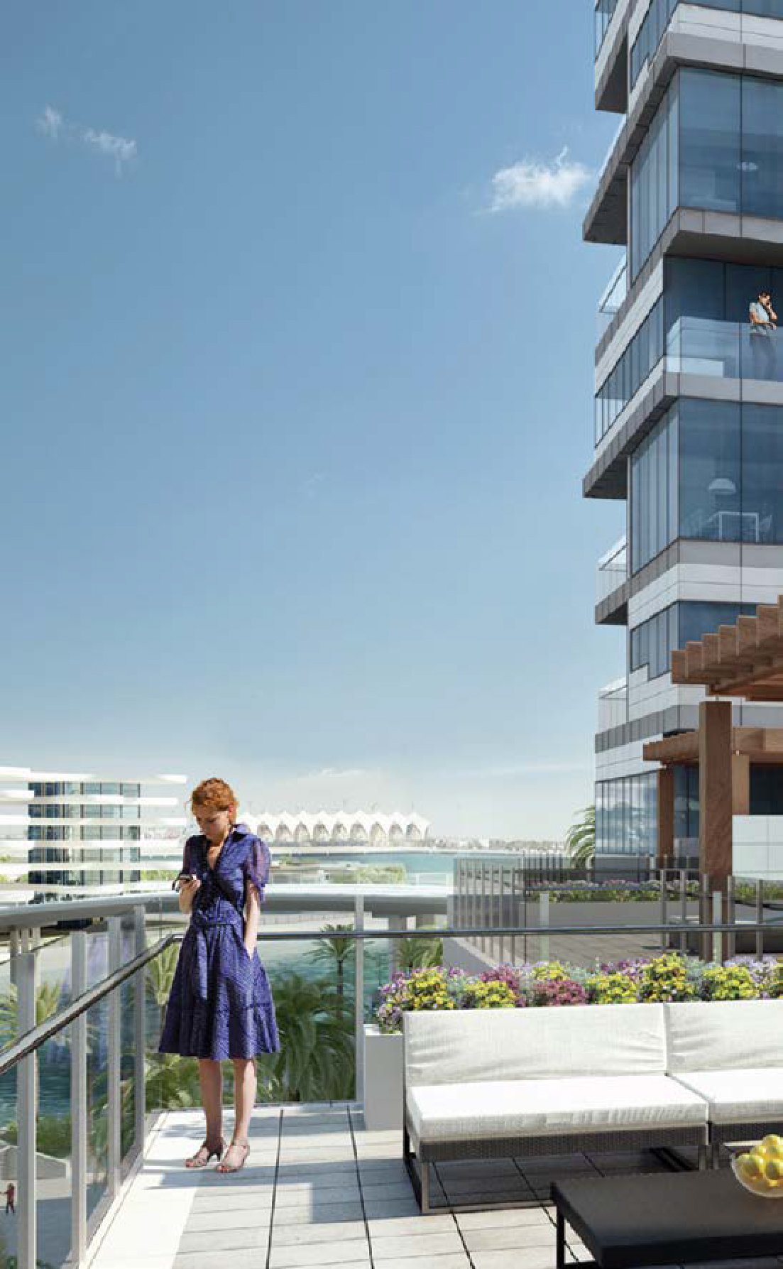 Each residence features private balconies or terraces with panoramic views of Al Raha Creek.